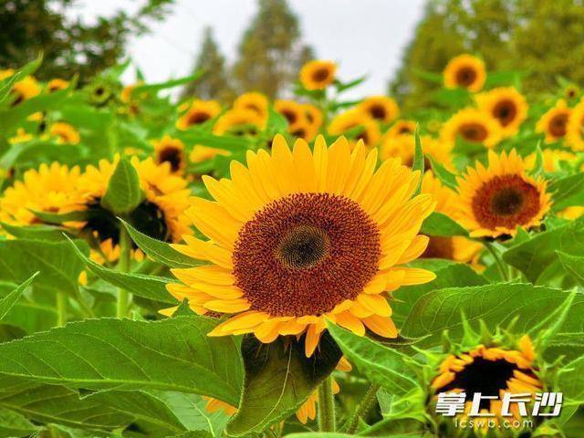 今日上午,记者走进长沙园林生态园向日葵种植区,仿佛踏入了金色的海洋。大片花田被精心规划,不同品种的向日葵错落分布,放眼望去层层叠叠的花瓣簇拥着嫩黄的花蕊,随手一拍都是充满氛围感的大片。